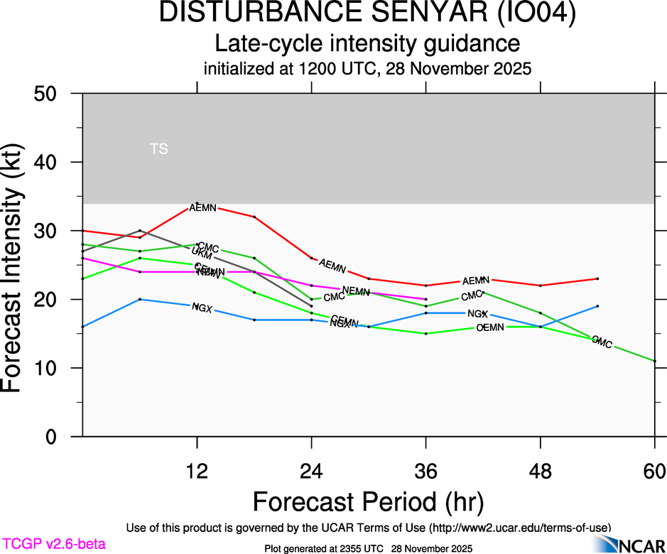 This page provides plots and information for FOUR (IO04). The left side of this page provides TCGP-generated plots of numerical guidance and other TCGP-curated data. The right side of this page provides external links to additional information and products. Most of the model guidance displayed in the plots come from modeling centers outside of NCAR, such as NOAA, other national numerical weather prediction centers, and universities. Click here for information about who contributes to TCGP. Your use of this page is governed by the UCAR Terms of Service and this site's disclaimer. To obtain help for any item on this page, click on the question mark beside that item.